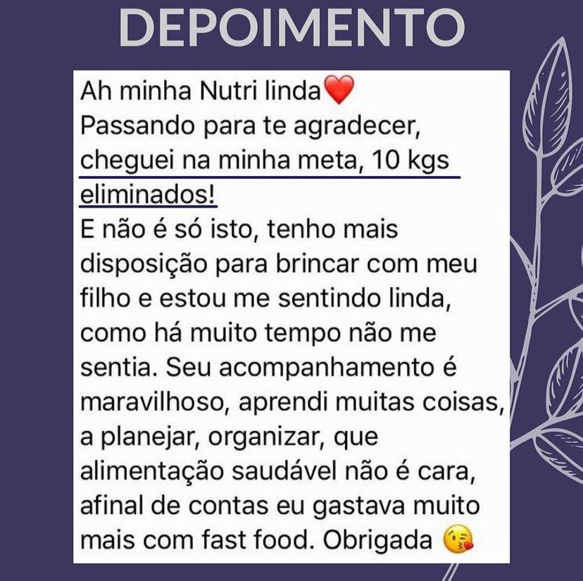 A cada consulta vou te ensinar a mudar sua mente e sua relaçao com a comida!