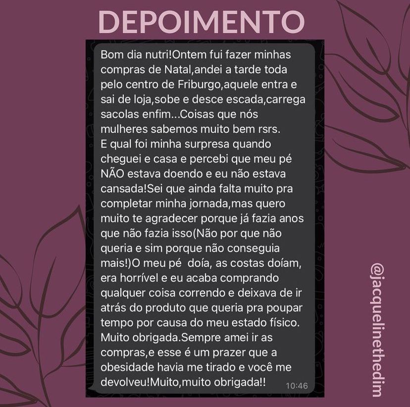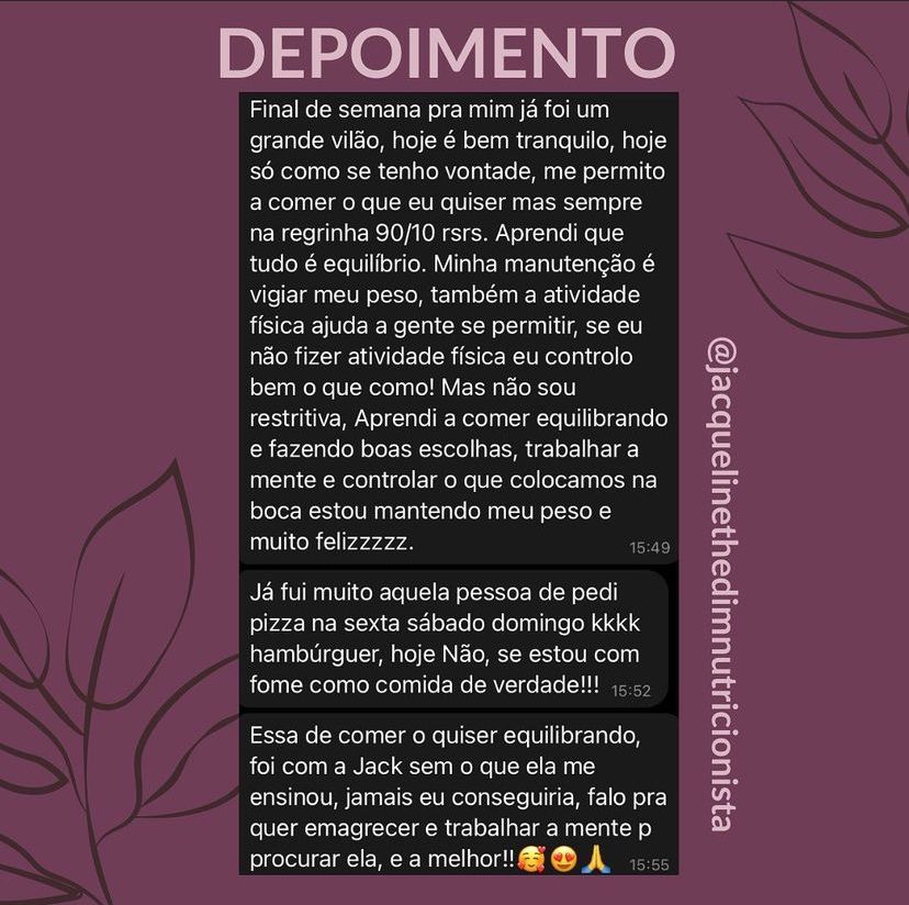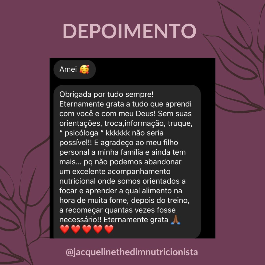 Conte com a nutri Jacque durante todo o processo.